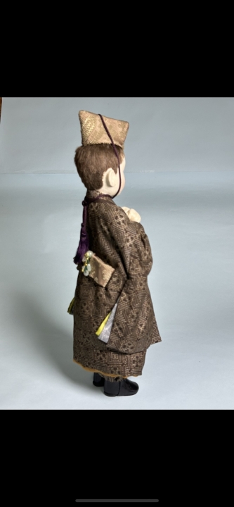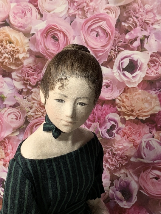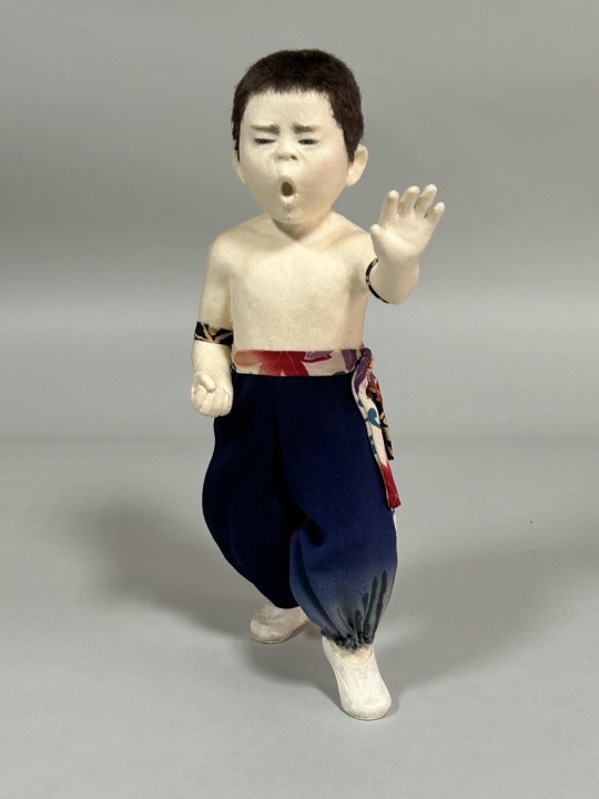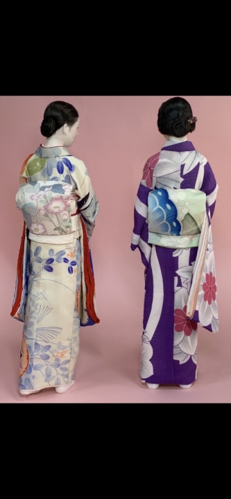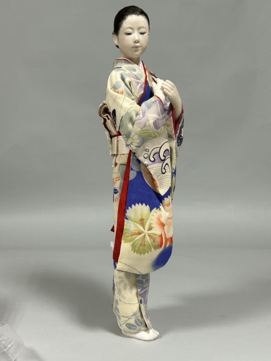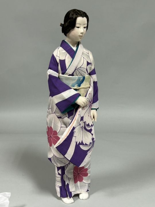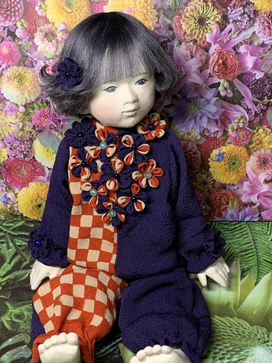 In an outfit of traditional tsumami zaiku clothes