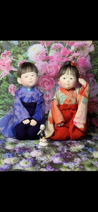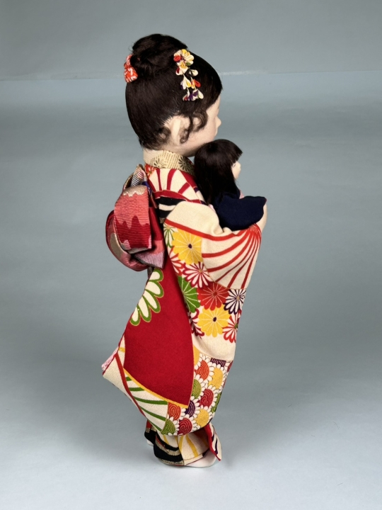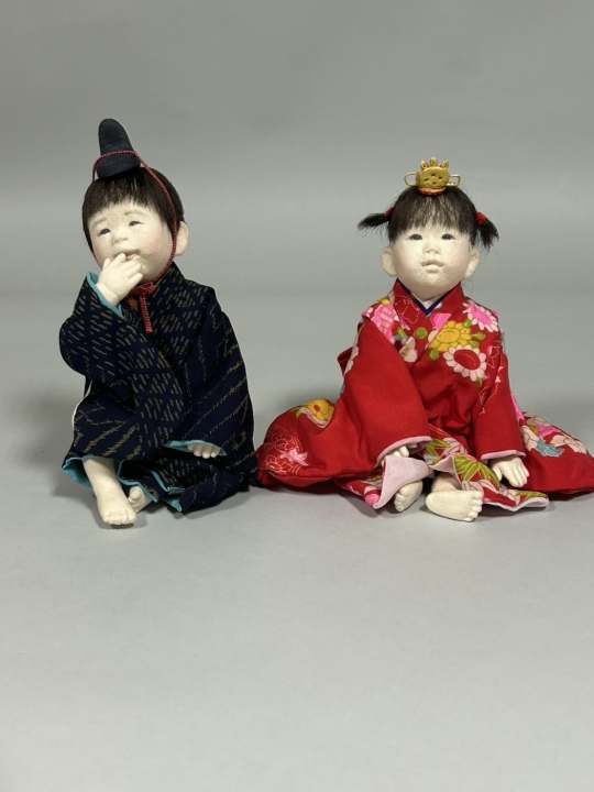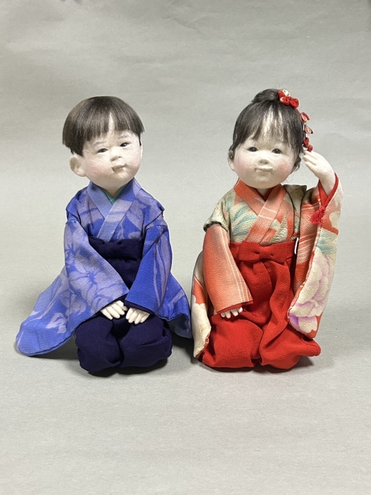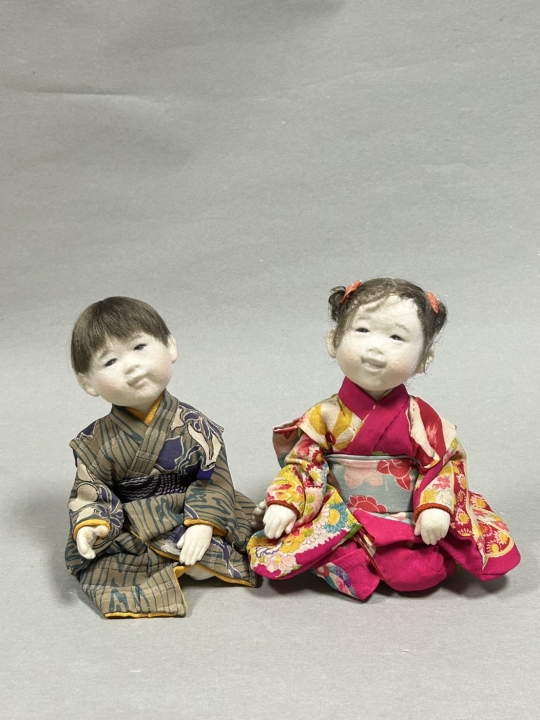 作品サイズ:18, 16 cm コメント: 姉弟 A sister and her little brother in kimono