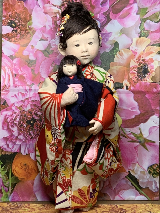 作品サイズ:30cm, 24cm コメント: 姉妹(昭和初期) Two sisters of early Showa Era