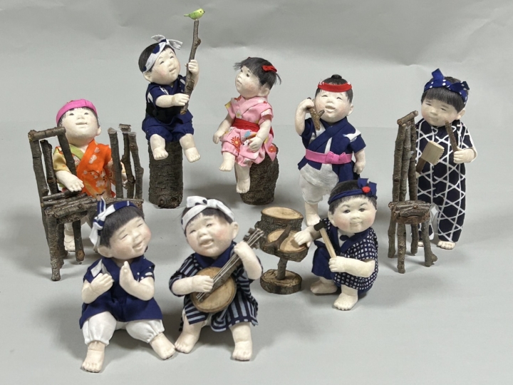 作品サイズ:11 ~ 22 cm x w40 コメント: 森の中の子供たち Children with handmade toys and furnitures