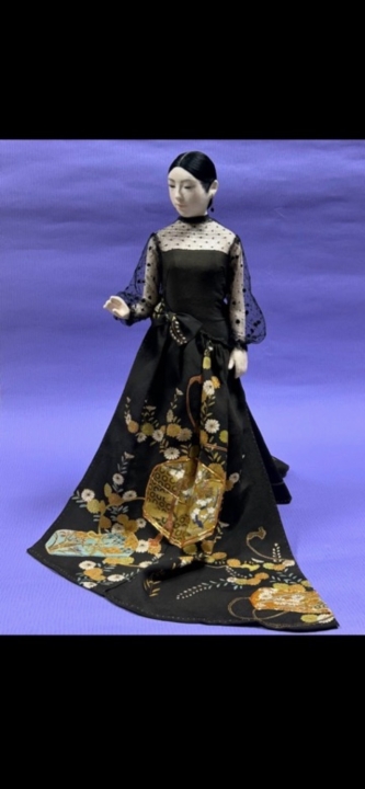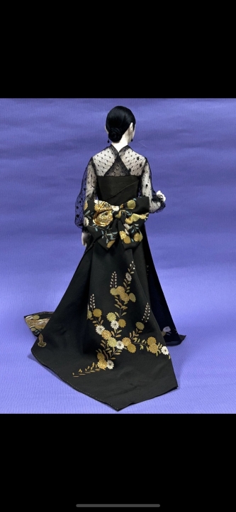 作品サイズ:45 x 34cm コメント: 黒留め袖のドレス A lady in beautiful black tomesode dress. Tomesode is the most formal kimono worn by married women typically worn at weddings and other formal occasions.