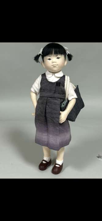作品サイズ:35 x 15 cm コメント お人形さんと一緒 Holding a purple doll